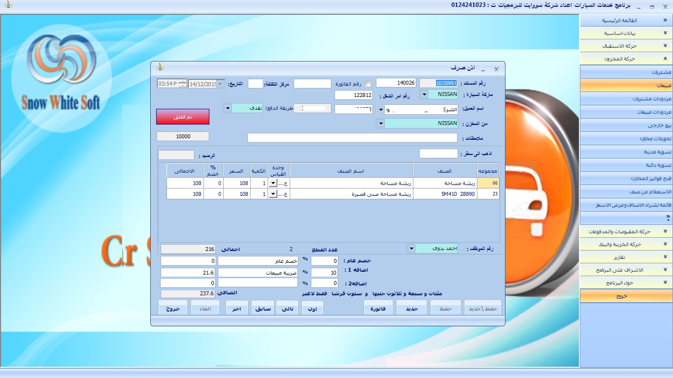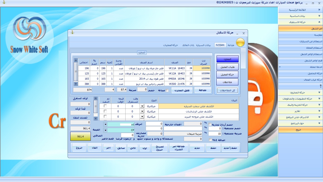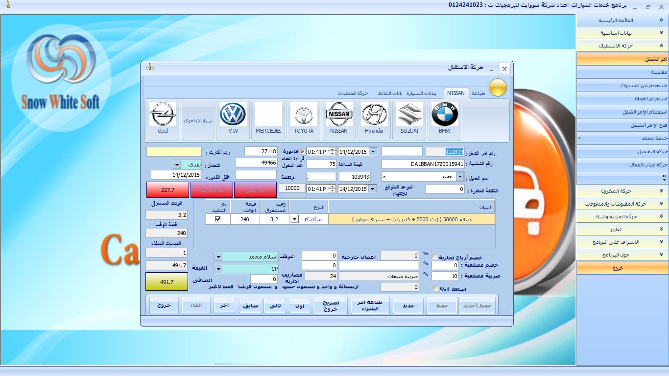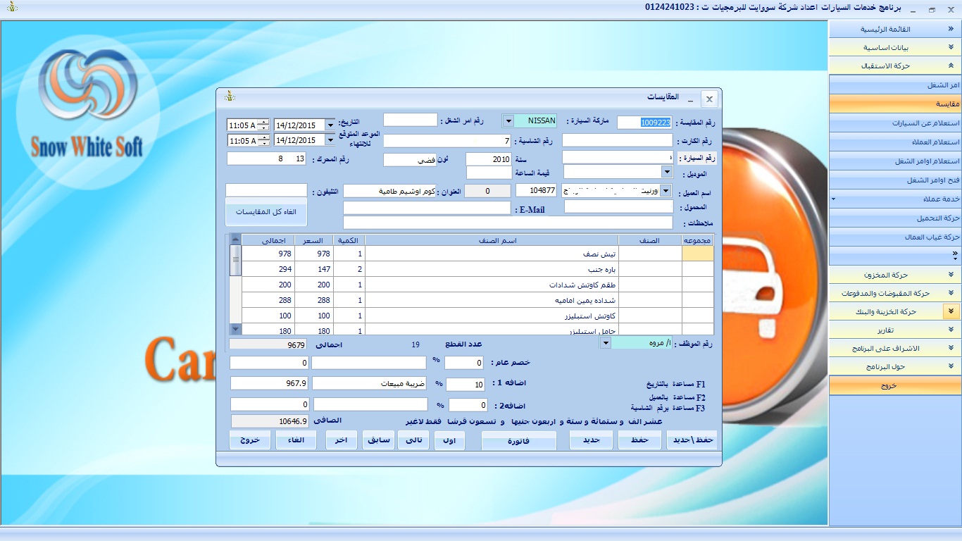 • تكويد الصيانات الثابتة لكل نوع سيارة واسعارها والقطع المستبدلة بها