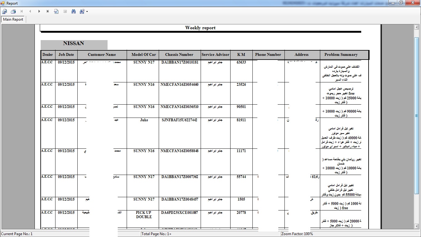 • إمكانية تعديل التقارير لتتوافق مع توكيلات السيارات المختلفة